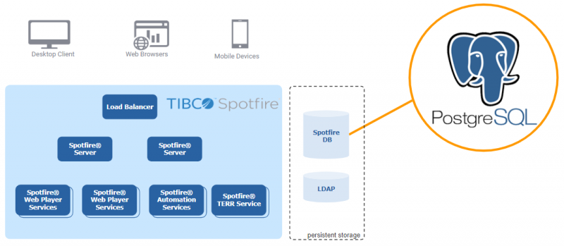 Теперь Spotfire поддерживает PostgreSQL версии 11 и 12 (как для Windows, так и для Linux) в виде базы данных Spotfire Server. PostgreSQL 12 является последней стабильной версией, PostgreSQL 11 — это последняя версия, поддерживаемая основными облачными провайдерами.